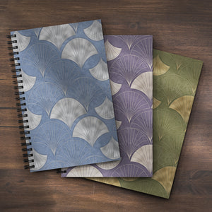 Dress up your desk with a spiral notebook featuring the full Fanwork trio: Steel, Amethyst, and Verdant. Each tone gives the Art Deco pattern its own flavor: cool and sleek, soft and regal, or that lush green-and-gold glow.